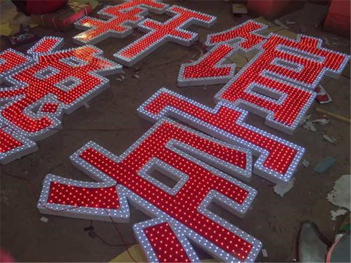 铁皮字。前几年没有吸塑发光字之前应用比较的多,分平面铁字和凸面铁字两种,材料为铁皮敲打,用焊接形式加厚度,分烤漆和喷漆上色。