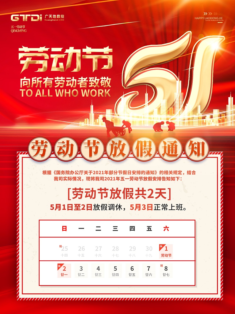 FUN88·乐天堂(中国游)数控2021年五一劳动节放假通知