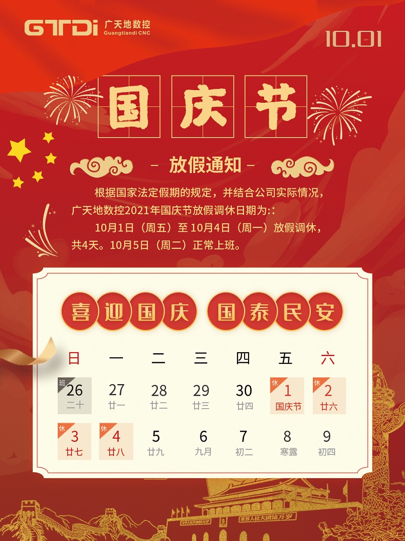 FUN88·乐天堂(中国游)数控2021年国庆节放假时间安排通知